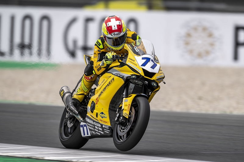 La chose fut éclatante dès le départ où Aegerter, sur sa Yamaha arborant une livrée spéciale jaune pétant, s’est maintenu avec autorité en tête, même si un bref passage au leadership de Philipp Öttl, venu jouer les trouble-fêtes avec les deux leaders du championnat, aurait pu semer la zizanie.