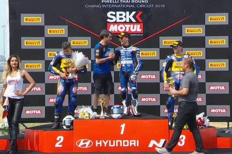 A phenomenal victory from @JulesCluzel16 who takes the win in Buriram ahead of @Krummenator and Caricasulo 🙌#THAWorldSBK 🇹🇭 pic.twitter.com/t1jzEgpx95