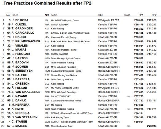 Classement de la première journée d’essais libres en Supersport :