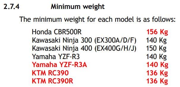 Pourquoi avoir choisi pour courir des Kawasaki Ninja 400 (EX400G/H/J), contre des Yamaha R3 et R3A, des KTM RC 390 et 390R (les seules monocylindres) ou des Honda CBR500R ?