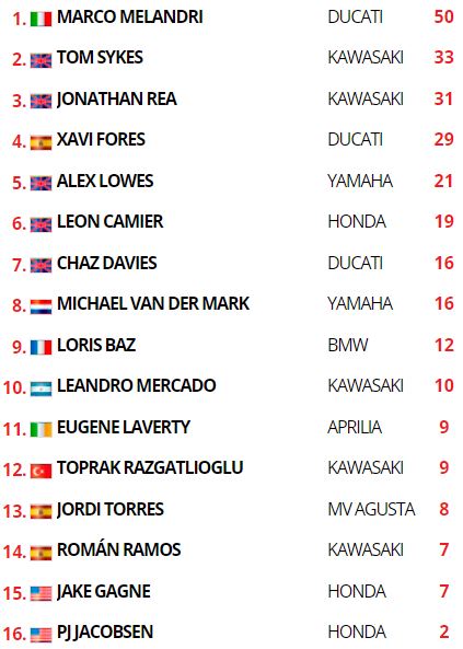 Classement provisoire du Championnat du Monde Superbike :