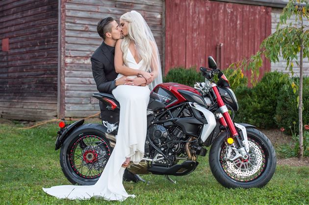 Et enfin félicitations à PJ Jacobsen, pilote officiel MV Agusta, qui vient de se marier avec sa fiancée de longue date Danielle Little (photo ci-dessous)
