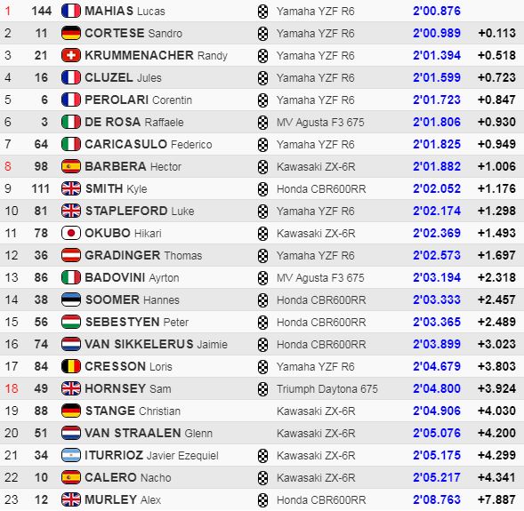 Si samedi à Losail Cluzel l’emporte et marque 25 points et que Cortese finit deuxième et score 20 unités, Jules sera déclaré Champion du Monde en raison de son nombre plus important de victoires (5 jusqu’à présent, contre 2 à Sandro).