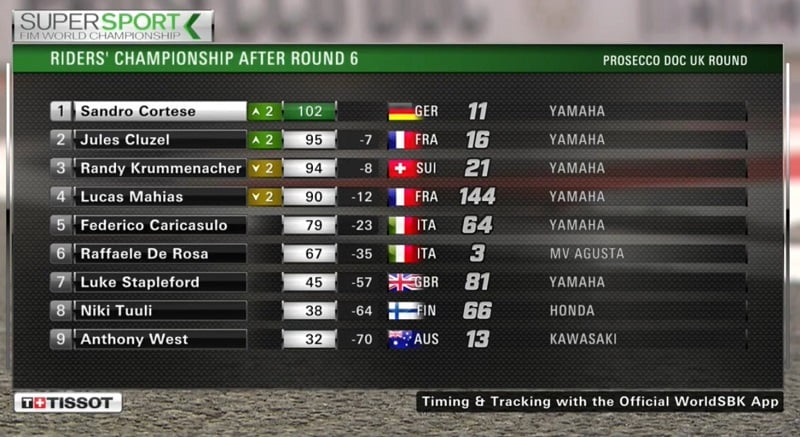Cortese s’emparait donc du commandement du classement provisoire du Championnat du Monde, devant Cluzel, Krummenacher et Mahias.