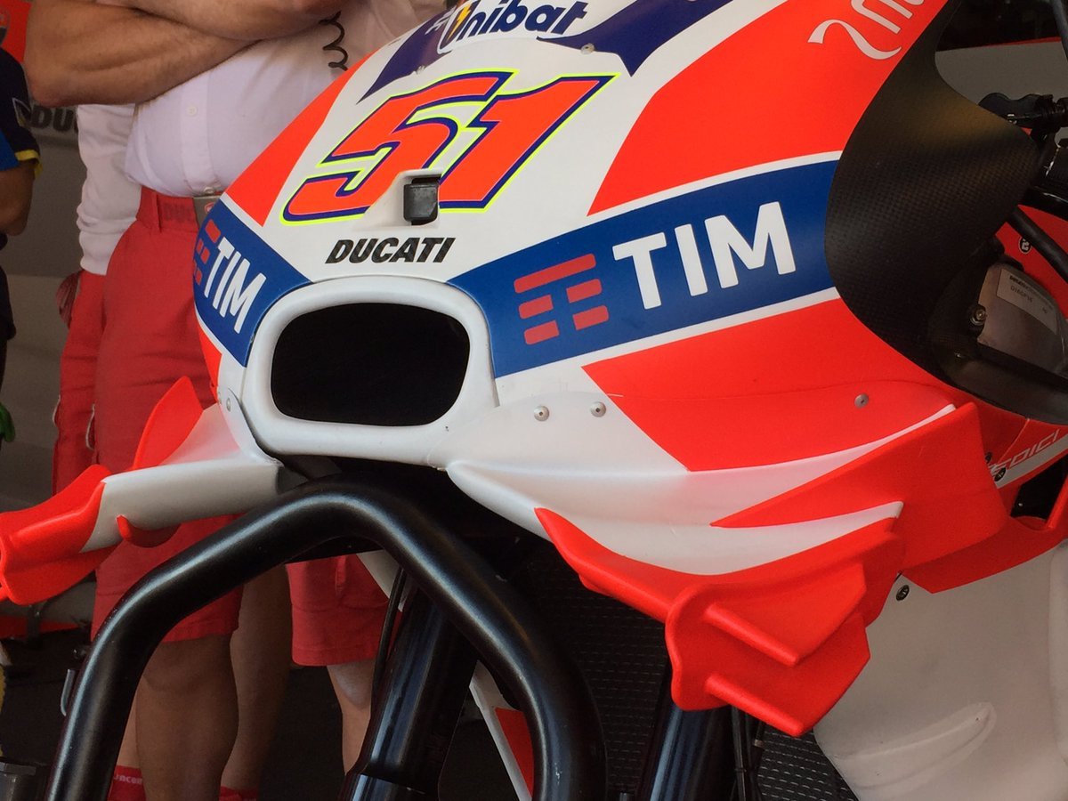 Ducati n’a de cesse de travailler l’aérodynamique et, quasiment à chaque Grand Prix, essaie une nouvelle évolution de sa D16GP.