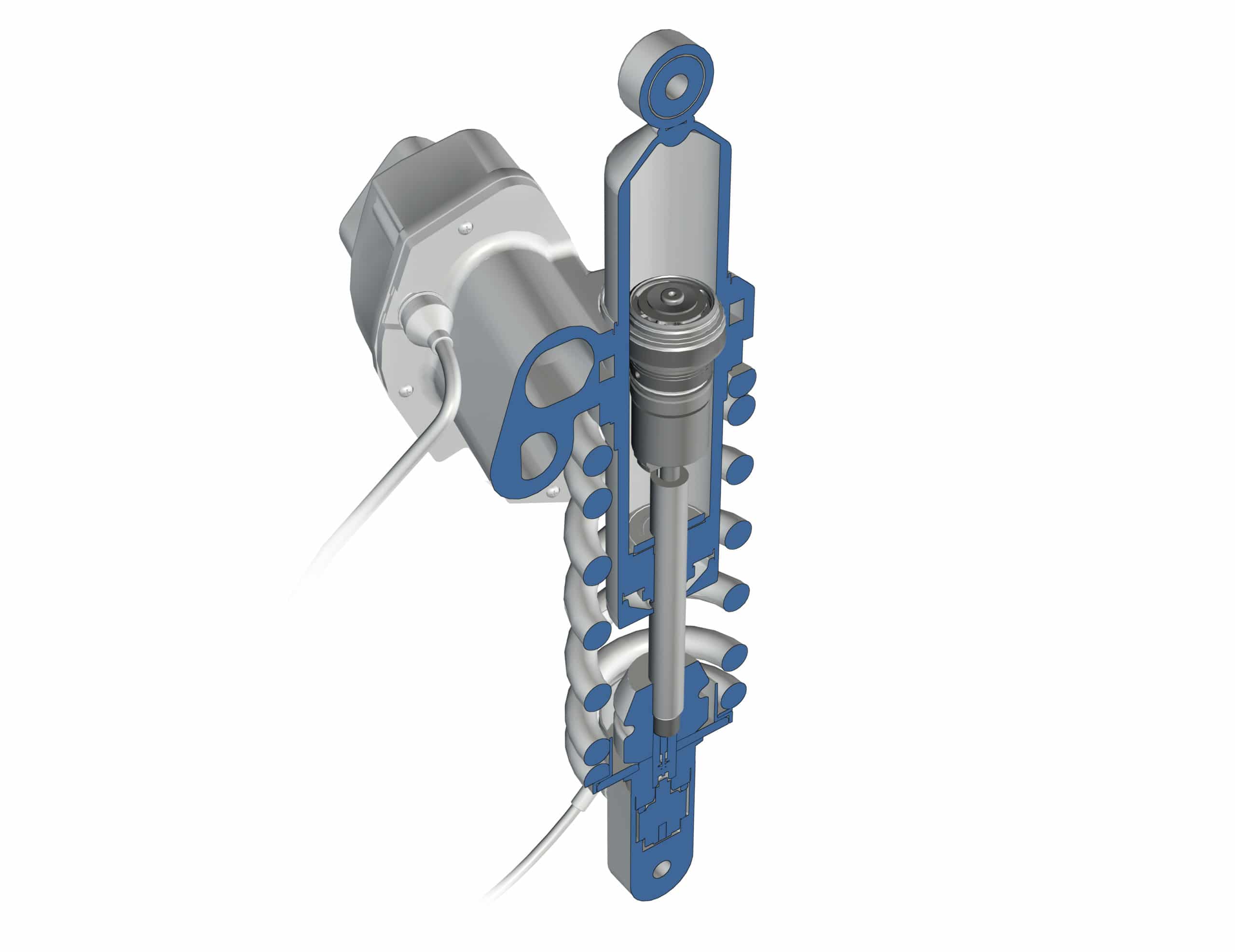 Vous avez probablement vu ces types de capteurs sur des MotoGP, où ils sont utilisés pour l’enregistrement de données. Appelés LVDT (Linear Variable Differential Transformer), ces longues tiges ressemblent un peu à un amortisseur de direction, et ils mesurent la course de l’amortisseur en continu, stockant l’information afin que les techniciens puissent analyser les données lors du retour aux stands du pilote.