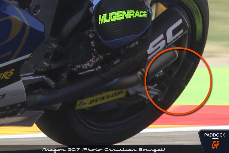 Et alors que tous les yeux étaient focalisés pour tenter d’en trouver un dans la fameuse « boîte à salade » de la Ducati GP17, il y en avait deux, bien visibles, accrochés à chaque extrémité du bras oscillant des Kalex du team SAG.