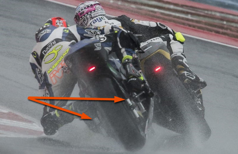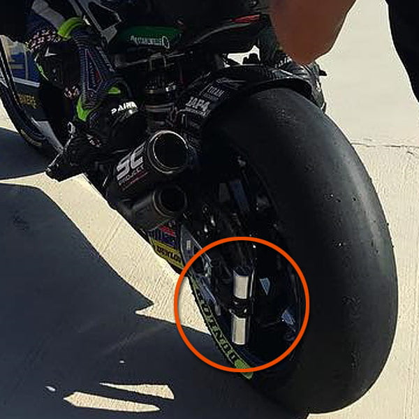 Cela a bien fait rire Eduardo Perales, propriétaire du team SAG et auteur de ce montage jusque-là inédit en Moto2, qui s’est confié au site Speedweek : « Je ne peux pas vous expliquer de façon détaillée. Le nom de ce composant est ISSR. Cette technique devrait réduire le chattering devant et derrière. Parfois, ça marche et parfois non. J’ai dépensé beaucoup d’argent pour perfectionner cette technique. Je fais ce composant moi-même, et seulement quelques personnes savent ce qu’il y a à l’intérieur, en plus de moi. J’utilise aussi des pièces fabriquées par six compagnies différentes. C’est pourquoi je ne peux révéler aucun détail.