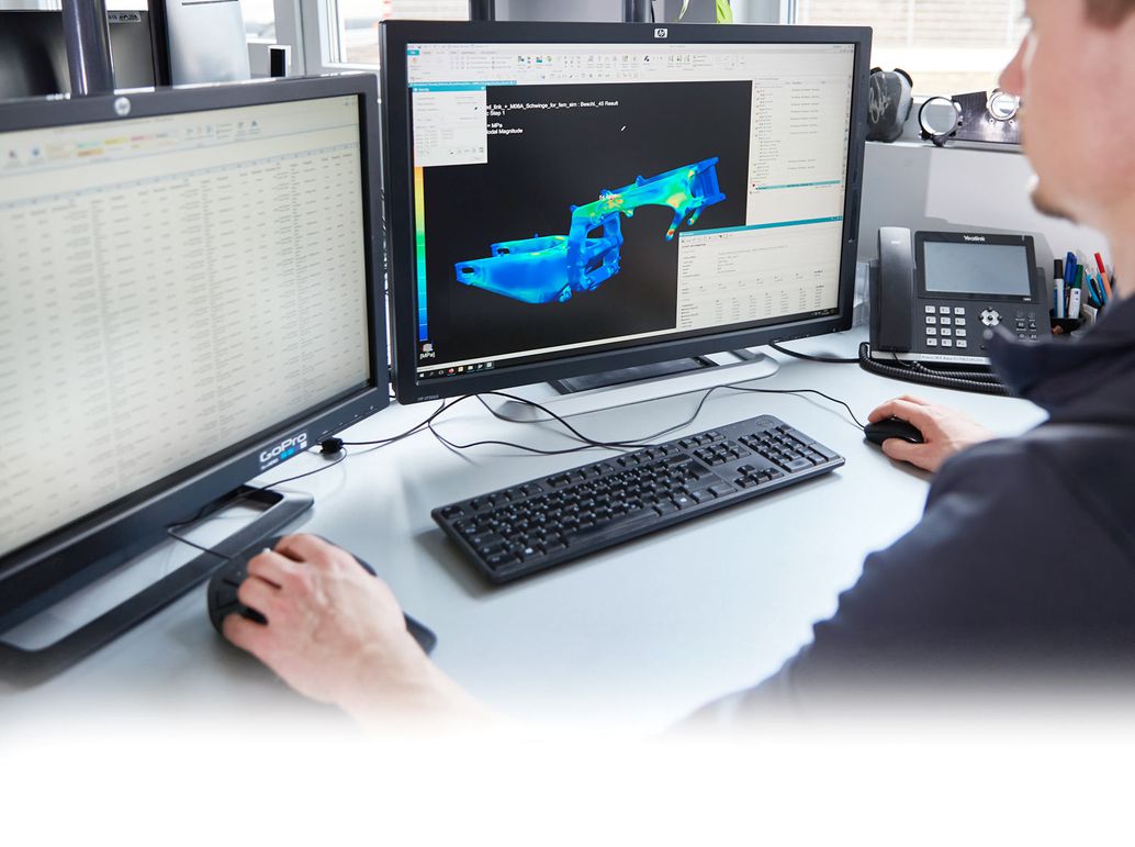 L’équivalent numérique est de modéliser le châssis en éléments finis puis d’appliquer les différentes contraintes attendues dans la simulation numérique. Il est possible sur certains logiciels de modifier les dimensions de conception par petits incréments et de répéter le test, encore et encore à travers un grand nombre d’itérations, de sorte que les valeurs souhaitées soient atteintes par des approximations successives. Cela peut sembler d’un autre monde, mais il nous est tout simplement moins familier que des comparateurs et des règles. L’aviation utilise ces techniques depuis des décennies et maintenant le faible coût de l’informatique ouvre ces outils à un plus grand nombre d’utilisateurs.