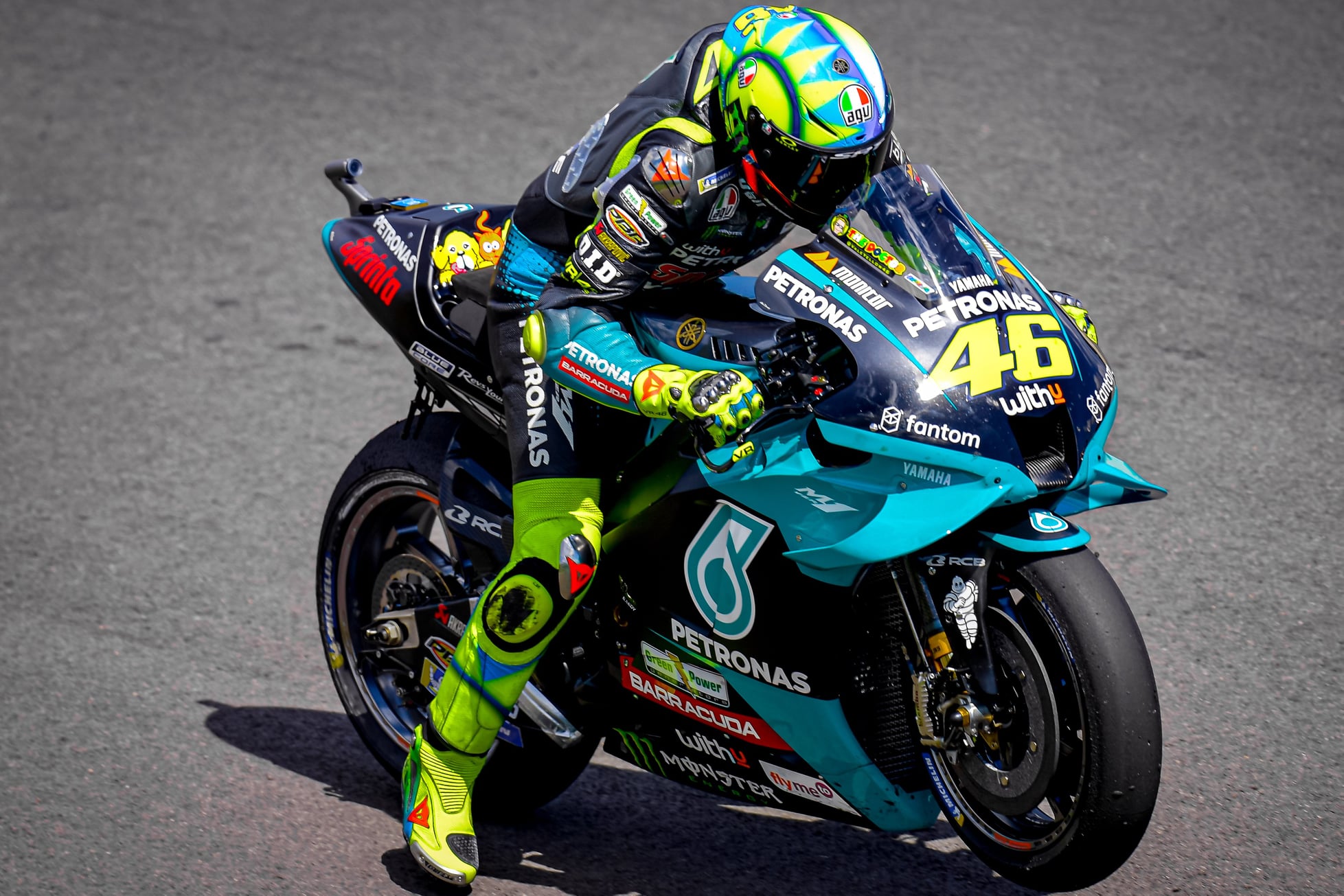 En théorie, les avantages sont moins de secousses subies par le pilote à haute vitesse et éventuellement une très, très légère augmentation de la vitesse de pointe. D’après Franco Morbidelli, « c’est quelque chose que Dainese et Vale ont développé ensemble pour optimiser l’aérodynamique de la combinaison ».