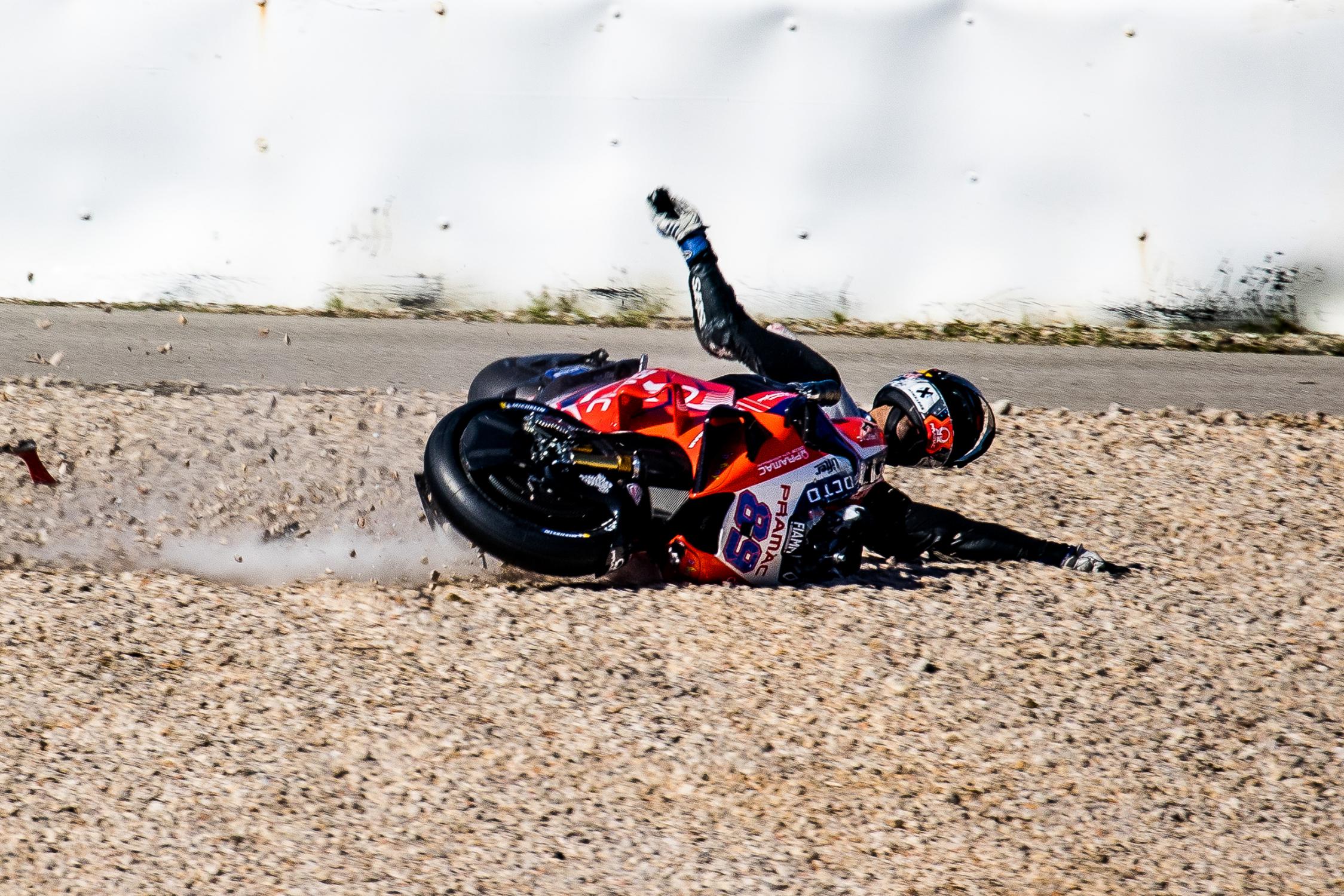 Jorge Martin a lourdement chuté lors de la FP3 du Grand Prix du Portugal le WE dernier : sacrément secoué, il a dû attendre ce mercredi pour passer sous le bistouri et va devoir se remettre de sept fractures… Alpinestars a publié les données relatives à l’incident impliquant le pilote Ducati Pramac.