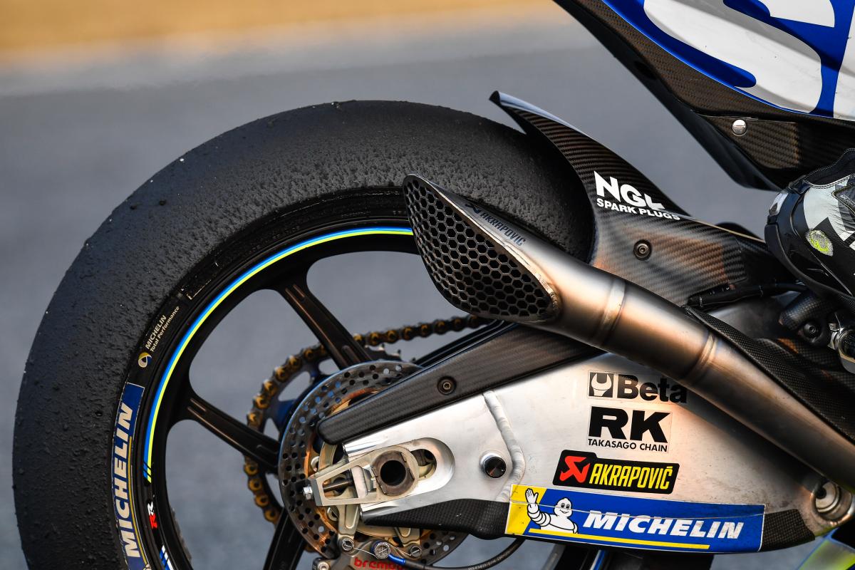 Passons désormais à la saison 2018. Sur cette photo, on voit encore l’aluminium sur la poutre principale du châssis de la GSX-RR. Ce n’est plus le cas ensuite.