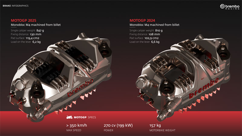 Brembo, « Braking Inspiration Partner » du MotoGP et fournisseur des 22 pilotes de la catégorie reine, renouvelle son engagement avec un nouvel étrier de course présenté à l’EICMA 2024 de Milan et que les pilotes du MotoGP pourront utiliser à partir de la saison 2025.