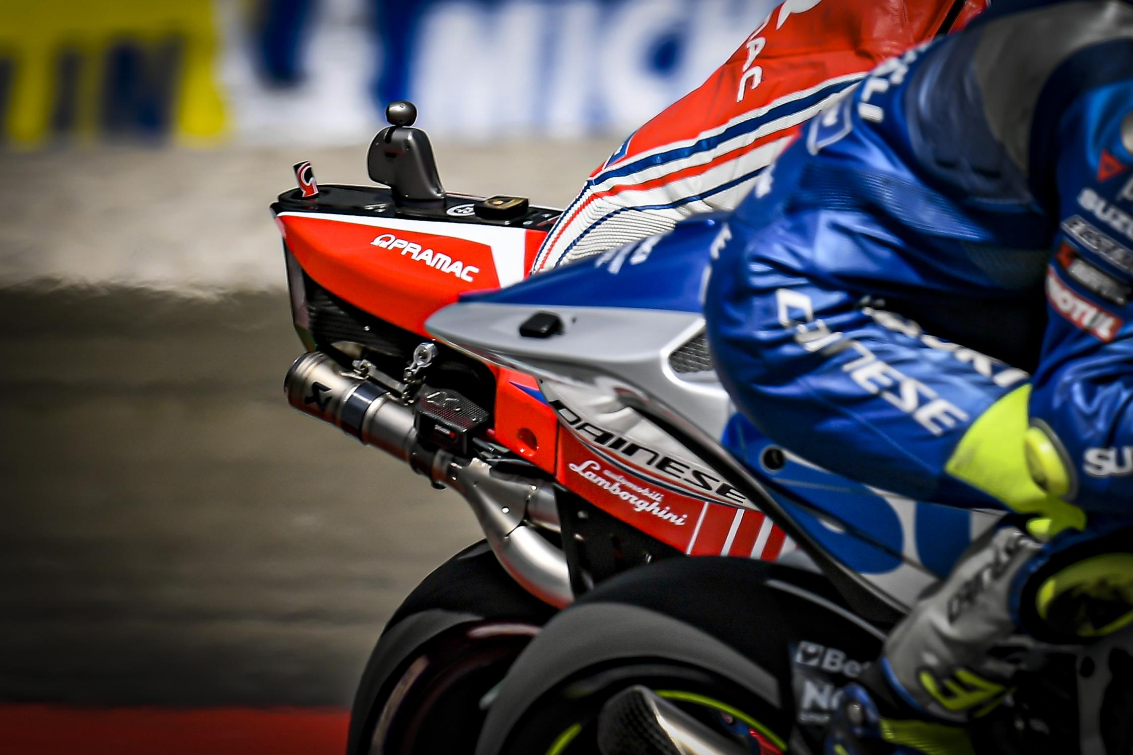 Ici, on peut s’attarder sur la Ducati GP19 de Tito Rabat. Ce qui est intéressant à observer ici est le package aérodynamique en bas de la moto et au niveau des roues. La partie qui dépasse à l’avant droit est l’admission d’air des étriers de freins, pour diriger l’air ceux-ci pour éviter la surchauffe.