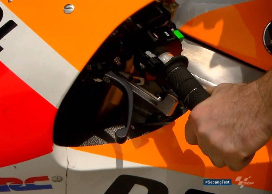 C’est ainsi qu’à Sepang, l’une des deux motos à disposition de Jorge Lorenzo et Marc Marquez disposait de ce montage, même s’il ne s’agissait pas de la première tentative pour le pilote majorquin. En effet, il avait déjà essayé cela en 2014 et 2015 sur sa Yamaha, aussi bien dans une version « palette » commandée par le pouce que dans une version « levier » commandée par un doigt.