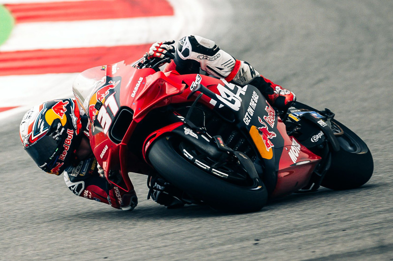 “Ce n’est pas ça. Alors, je pense qu’il ya vraiment deux paramètres. Le premier, c’est l’angle car c’est vrai qu’il met vraiment un angle assez important. Il a un style de pilotage vraiment en particulier, et la plupart des pilotes s’accordent pour dire qu’il y a quelque chose à apprendre: il pilote comme personne d’autre ne pilote sa machine. Ca c’est une chose, et deuxièmement c’est aussi un peu les réglages. C’est à dire que si par exemple tu as décidé d’avoir l’arrière de la moto assez bas, bah tu auras tendance à plus facilement frotter les carénages. Donc je dirais que l’autre paramètre, c’est l’ensemble des réglages de sa machine, alors il n’y a rien d’extrême, mais l’ensemble des réglages, qui fait que peut-être lui touche un peu plus que les autres. Mais tout le monde touchait, hein, tout le monde a touché plus ou moins ! Tout le monde a touché parce que ce qui se passe c’est qu’à Portimao tu actives le ride height device, donc tu abaisses l’arrière de la moto, et à un moment donné tu as une compression, enfin une petite bosse, et sur cette bosse tu touches. C’est la spécificité de ce circuit-là, et ça peut-être qu’on ne le retrouvera pas ailleurs dans le championnat. Donc tu as cette petite bosse où tout le monde touche plus ou moins, mais c’est sûr qu’Acosta, à cet endroit-là, c’est celui qui touchait le plus, c’est clair.”