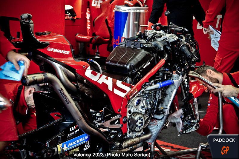“Oui, c’est sûr. Après, l’historique, tu le connais. Ce premier châssis, il est apparu en course sur la moto de Pedrosa wild card à Misano, avec le résultat qu’on connait, c’est à dire qu’il a fait 4e, donc un super résultat pour une wild card. Le lendemain, tout le monde avait des essais, alors ce châssis a été essayé par les pilotes d’usine, avec un résultat on va dire plus que prometteur. Bon, il faut aussi raison garder, c’est sûr que Pedrosa ayant fait 4e la veille, c’est sûr qu’en étant dessus tu ne vas pas dire “Ah non, ça ne marche pas” (rire). Mais tu vois, des fois l’histoire elle est quand même assez incroyable, parce que je pense que si Pedrosa était tombé, peut être que ce châssis on l’aurait vu apparaître seulement l’an prochain ou même plus tard, je n’en sais rien. Mais bon, il se trouve que lui, il a fait 4e.