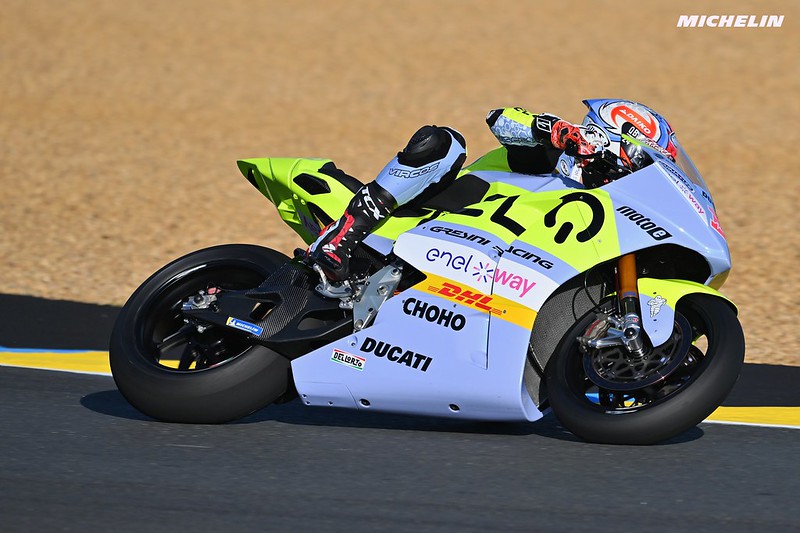 « Oui, côté Moto GP, je dirais que c’est l’Inde. Ça va être un peu une surprise pour nous, parce qu’on n’y a jamais roulé, donc on ne connaît pas le circuit. Donc là, on apportera une spécification en plus à l’avant et une spécification en plus à l’arrière, juste au cas où on serait surpris des conditions, si le circuit génère trop de thermique ou est trop abrasif. Et sinon, on regarde très attentivement la moto électrique, parce qu’on a changé de fournisseur. Aujourd’hui, c’est Ducati qui fournit des motos qui sont plus légères et plus rapides. Et nous aussi, on a changé la gamme de pneus par rapport à l’année dernière. Au Mans, ça a bien fonctionné, mais il faudra voir sur tous les circuits comment ça fonctionne: on a un seul type de pneu, un avant et un arrière pour faire toutes les courses, et cette année il y en a le double: il y a 16 courses, 8 Grands Prix, et donc on regarde ça, surtout parce que c’est une nouvelle gamme avec plus de matériaux durables. A l’arrière, on a 52% de matériaux durables et c’est un peu la direction que veut prendre le championnat, et c’est aussi l’objectif du groupe Michelin, donc on est très intéressé de voir comment ça se passe. »