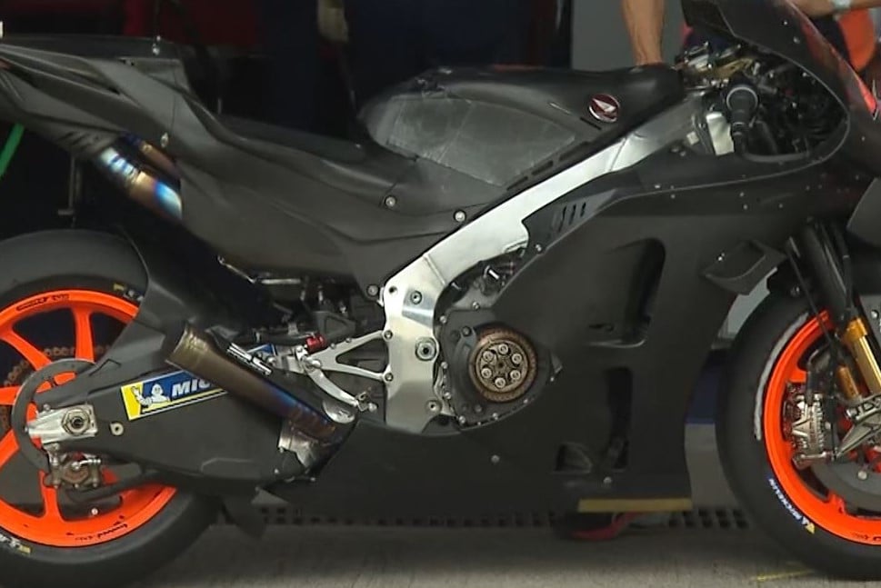 Le directeur de l’équipe Repsol Honda, Alberto Puig, a déclaré que la moto était « un nouveau concept », et bien que personne dans le camp HRC, ni les managers ni les pilotes, ne donne beaucoup de détails, les photos de la moto parlent d’elles-mêmes.