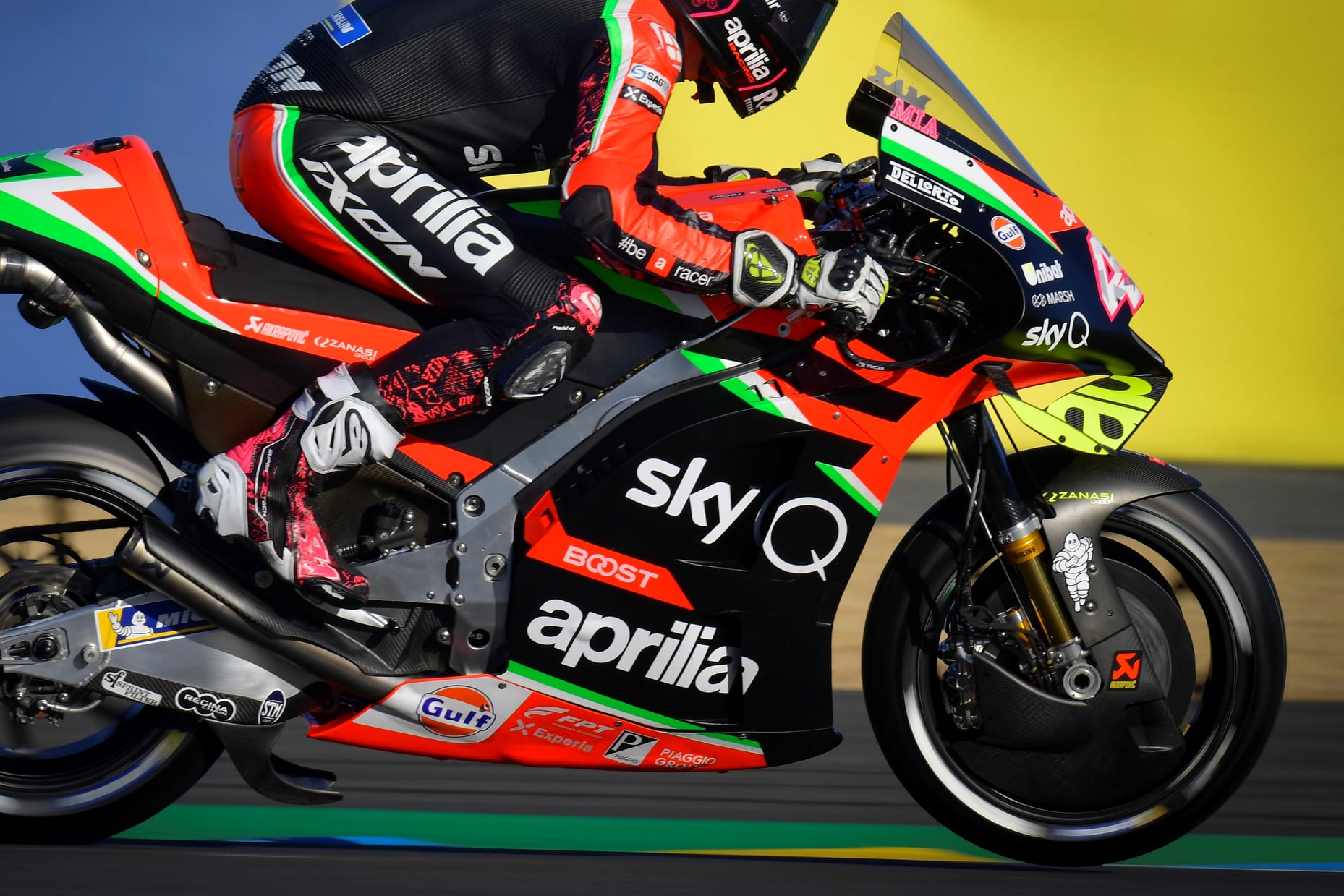 Aprilia a également utilisé son cache disque ce week-end. Ils ne l’ont pas beaucoup utilisé cette année, mais les conditions plus fraîches de ce week-end au Mans ont convaincu l’usine de Noale que c’était un ajout nécessaire.