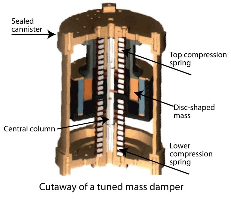 Le concept n’est pas nouveau et est même régulièrement utilisé en architecture pour les immeubles de grande taille situés dans une zone sismique. Les Mass Dampers, de plusieurs types, évitent ainsi un déplacement latéral trop grand et l’effondrement des bâtiments concernés.