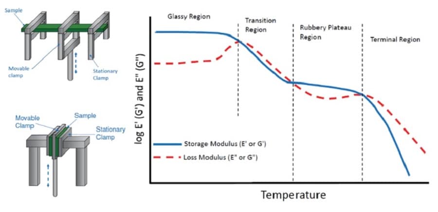 Un matériau viscoélastique a un comportement intermédiaire entre un matériau purement élastique, qui respecte la loi de Hooke, et un matériau purement visqueux qui respecte la loi de Newton sur la viscosité. Cela signifie que le matériau soumis à une contrainte se déformera en fonction à la fois du temps et de la température. La réponse du matériel sera retardée, déphasée par rapport à la sollicitation. La relation d’analyse de réponse, qui exprime la résistance à la déformation, est un module complexe constitué de la somme de deux facteurs.