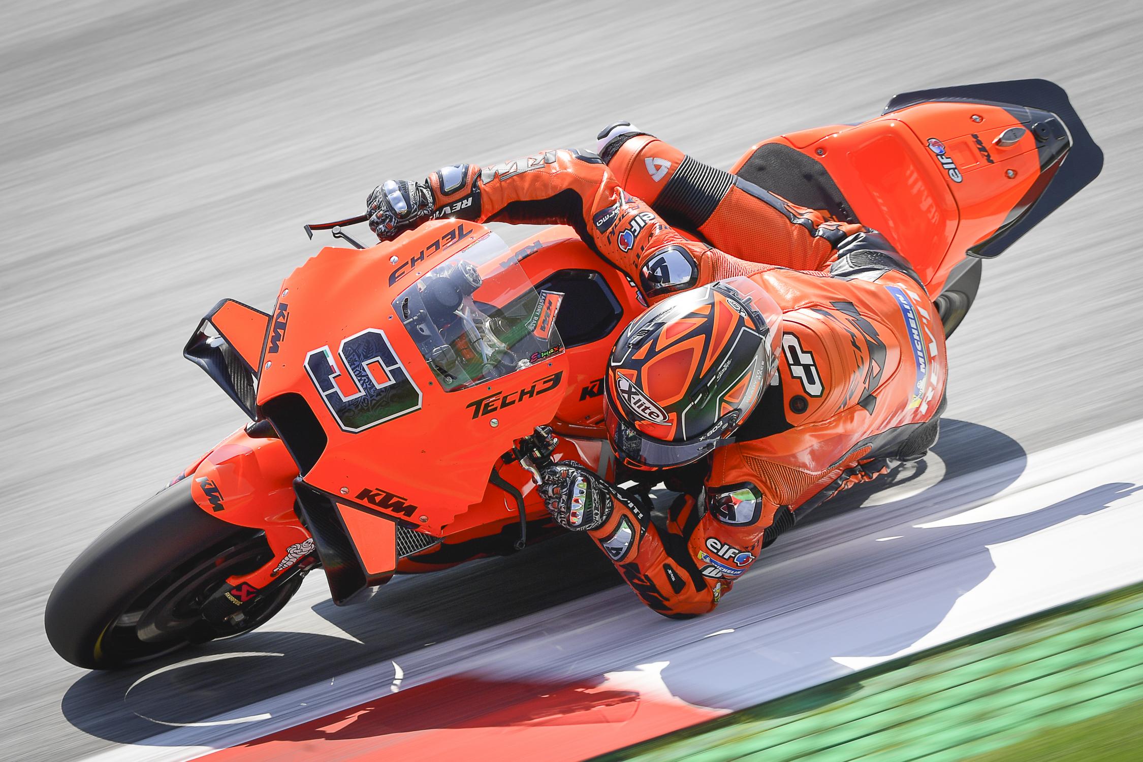 L’une des nouvelles pièces les plus intrigantes vues en piste en Autriche était la nouvelle « aile » sur la coque arrière des KTM de l’équipe Française Tech3. Il semblerait que l’idée derrière cela est de créer une petite quantité d’appui pour essayer d’aider à donner plus d’adhérence à l’arrière, quelque chose que KTM recherchait depuis un certain temps. En effet, les pilotes se plaignent souvent de la traction arrière par rapport aux autres, en particulier en comparant à Yamaha.