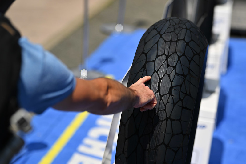 Cette année, Michelin a présenté de nouveaux pneus spectaculaires pour le MotoE, visuellement d’un aspect très différent des gommes utilisée habituellement, et dès leur apparition les pilotes MotoGP ont fait part au manufacturier français de leur souhait d’avoir la même chose dans la catégorie reine des Grands Prix…