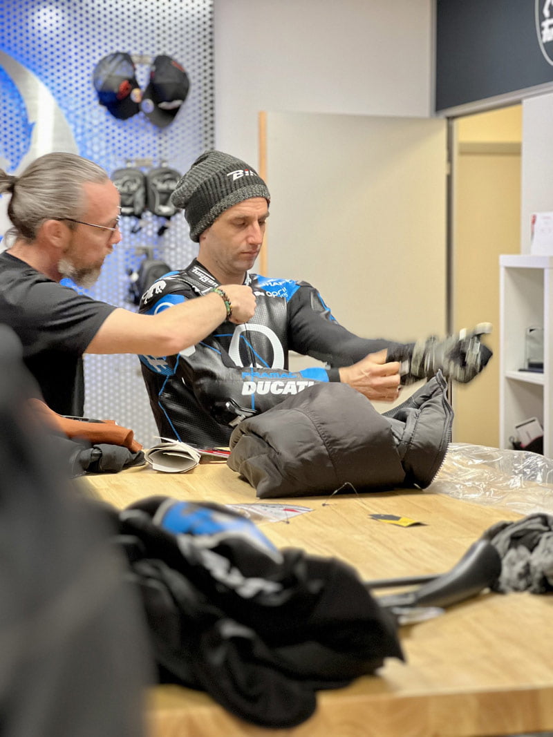 Johann est allé à Nîmes la semaine dernière pour découvrir sa combinaison Winter test 2022-2023. L’occasion pour les équipes techniques d’échanger avec lui sur la saison à venir.