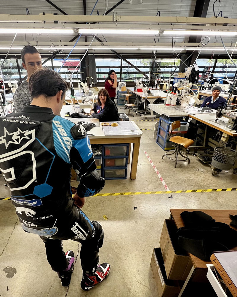 Avec une liberté de mouvement absolument essentielle mais un ajustement serré tout aussi important pour des raisons de sécurité, chaque ensemble de cuirs est adapté précisément aux besoins individuels de chaque pilote.