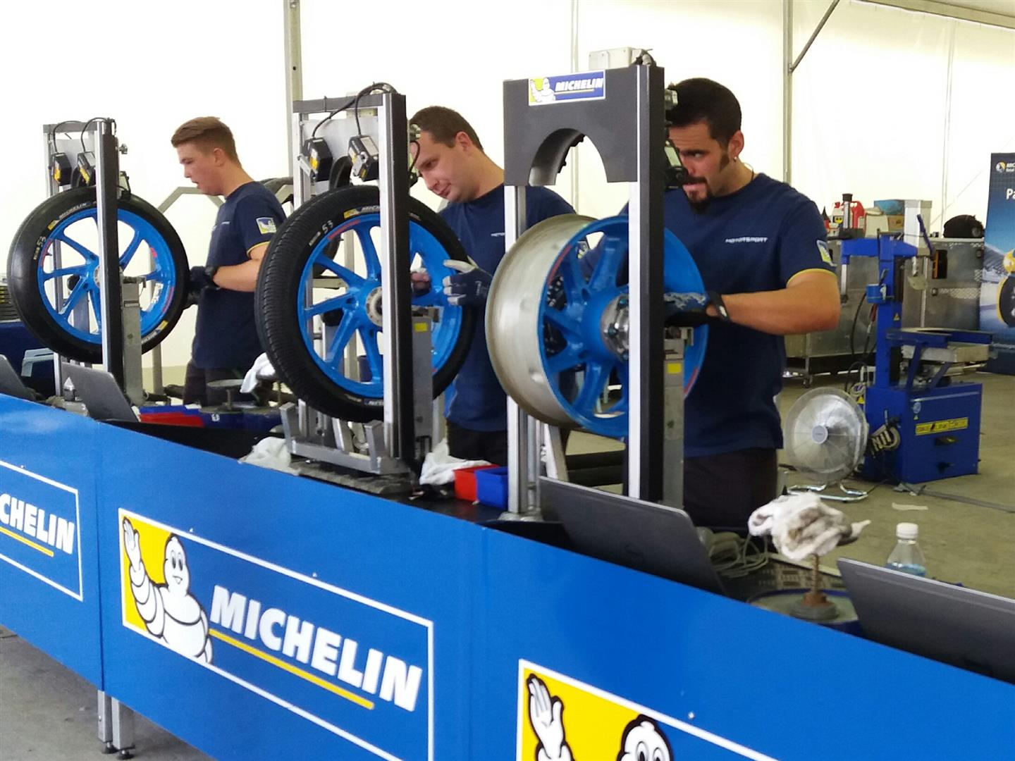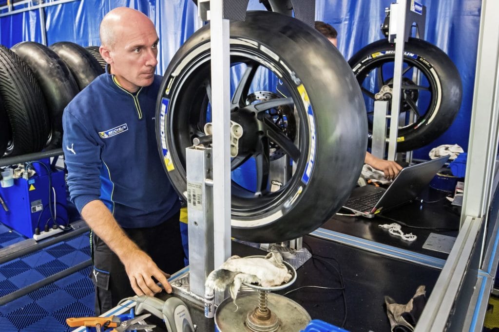 Pour qu’un pneu de course donne des performances optimales, il doit atteindre une température élevée qui augmente son adhérence à l’asphalte. Michelin stipule que les pneus doivent être conservés dans les caisses spécifiquement chauffées pendant au moins une heure, pour atteindre une température de 90°C avant d’entrer en piste. La température idéale pour les pneus avant est d’environ 100°C, et 120°C ou plus est recommandé pour les pneus arrière.