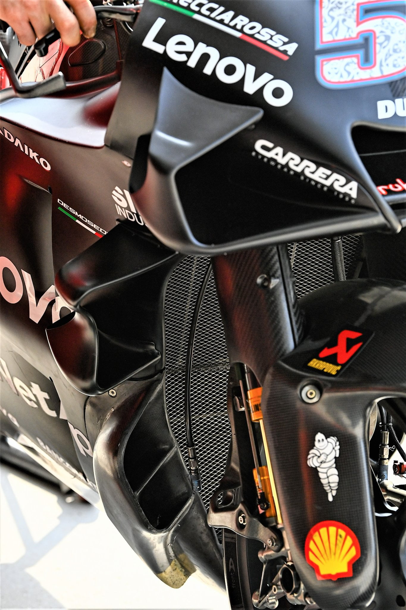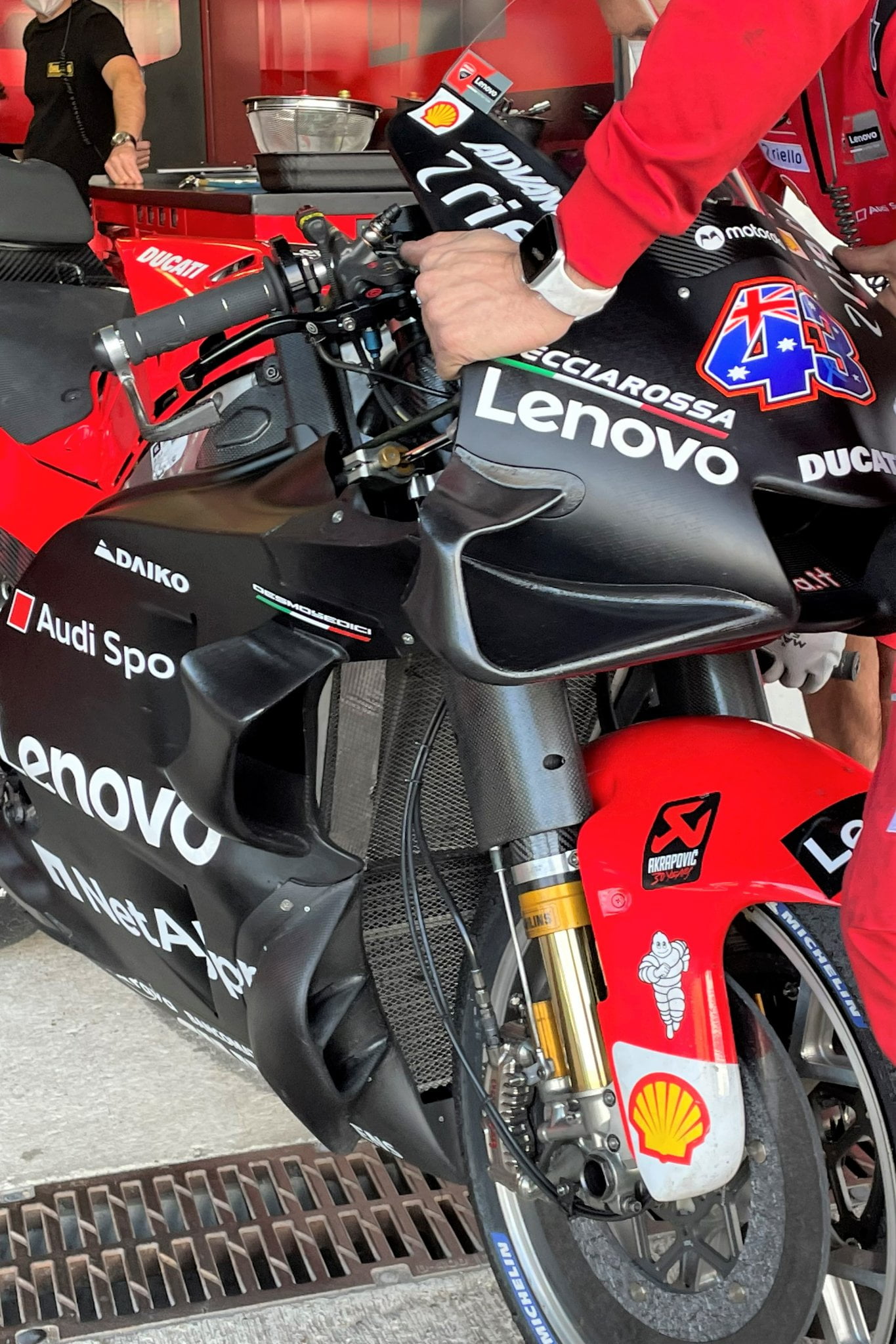 Au Test Officiel à Barcelone, Ducati a présenté un premier aperçu d’une évolution aérodynamique pour sa GP22. Les ailerons eux-mêmes n’avaient pas changé, c’était en fait le carénage avant lui-même qui avait été remanié : il était légèrement plus grand et un peu plus imposant. Il semblerait que cela permette au pilote de lui faciliter la tâche pour fendre l’air.
