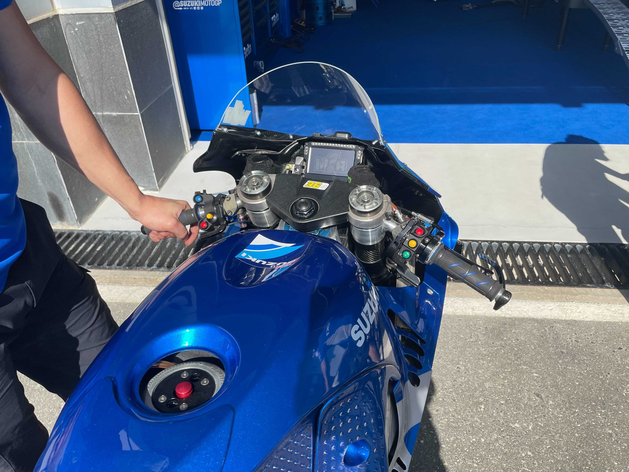 Une petite modification concerne un ajout de patchs ergonomiques sur le réservoir de Joan Mir. Cela montre que Suzuki ne cherche pas seulement à trouver des gains dans les grands domaines tels que l’électronique et le châssis, mais aussi avec les petits détails. Comme quoi en compétition, chaque détail compte !