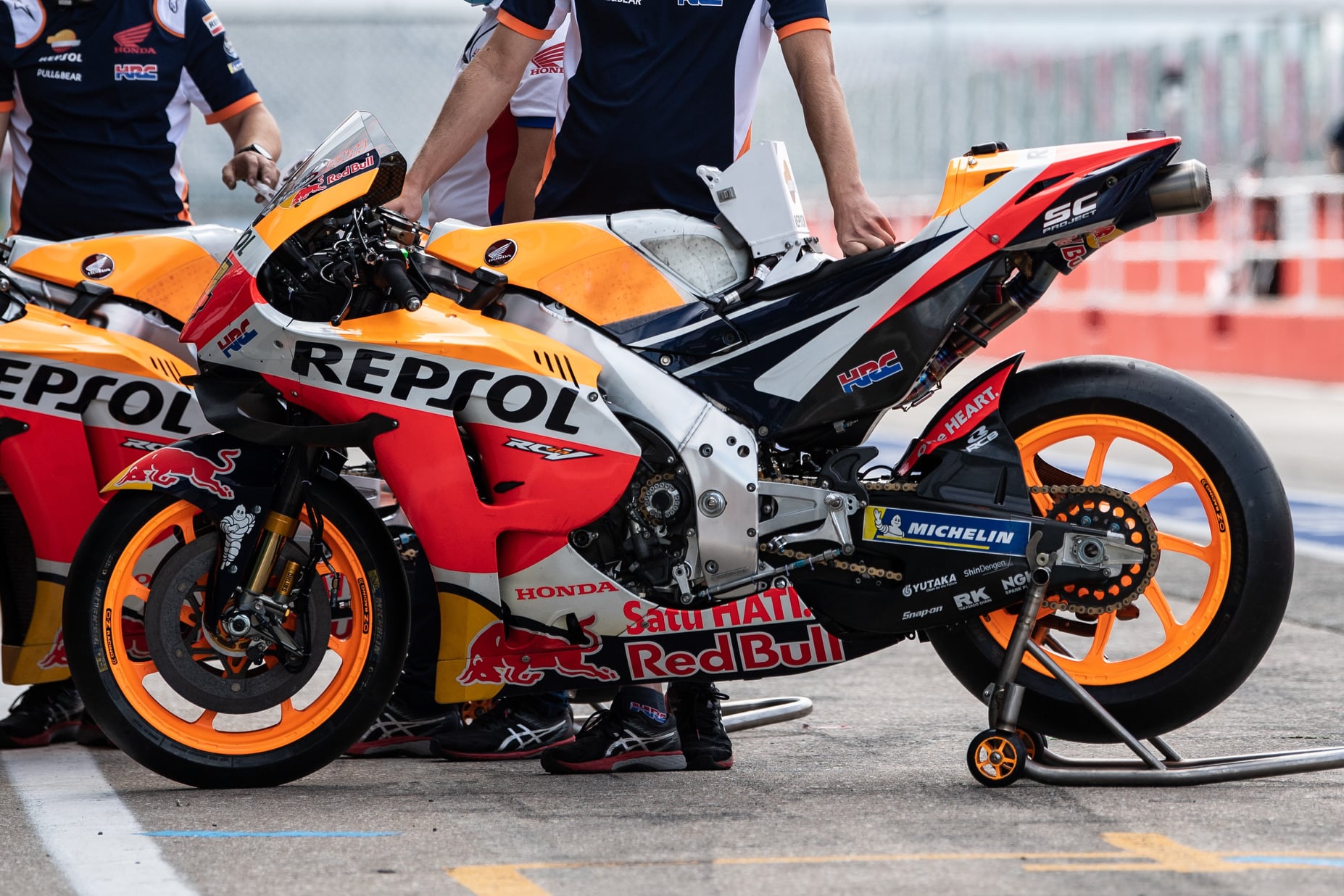 Les emplacements des boulons du support moteur montrent que Honda semble avoir fait pivoter le moteur vers l’arrière, modifiant considérablement l’équilibre de la moto. Ainsi, les ingénieurs HRC tentent de mettre plus de poids sur l’arrière pour gagner en adhérence.