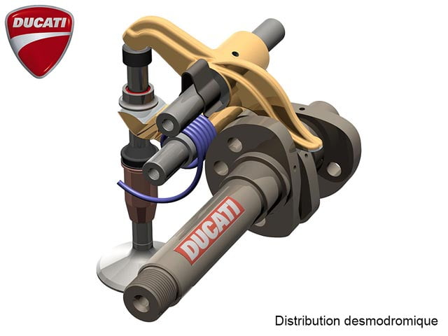 En fin de compte, Ducati utilise le système desmodromique parce qu’il connaît ce système puisqu’il l’a développé – c’est en 1955 chez Ducati que l’ingénieur en chef Fabio Taglioni (alias Papa di Desmo) met au point la distribution desmodromique qui a fait sa gloire – mais aussi parce que ça fait partie du charme de la marque Italienne.