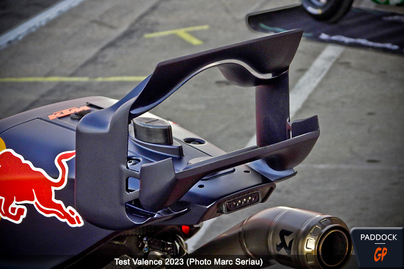L’objectif visé est donc uniquement un appui supplémentaire au freinage, ce qui différencie cette « invention » des ailerons de selle Ducati, supposés eux générer de l’appui en virage, mais aussi de ceux des KTM étant supposés avoir réussi la quadrature du cercle, c’est à dire à obtenir de l’effet de sol en virage ET de l’appui au freinage, une solution pour le moment très ponctuellement essayée aussi par Yamaha et Honda.