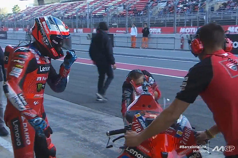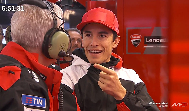Lors du dernier test MotoGP à Barcelone, tout le monde a pu voir Davide Tardozzi communiquer par radio avec Michele Pirro sur sa moto, à la surprise de Marc Marquez.