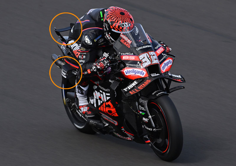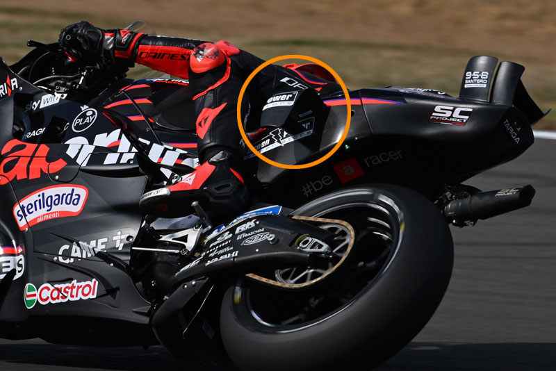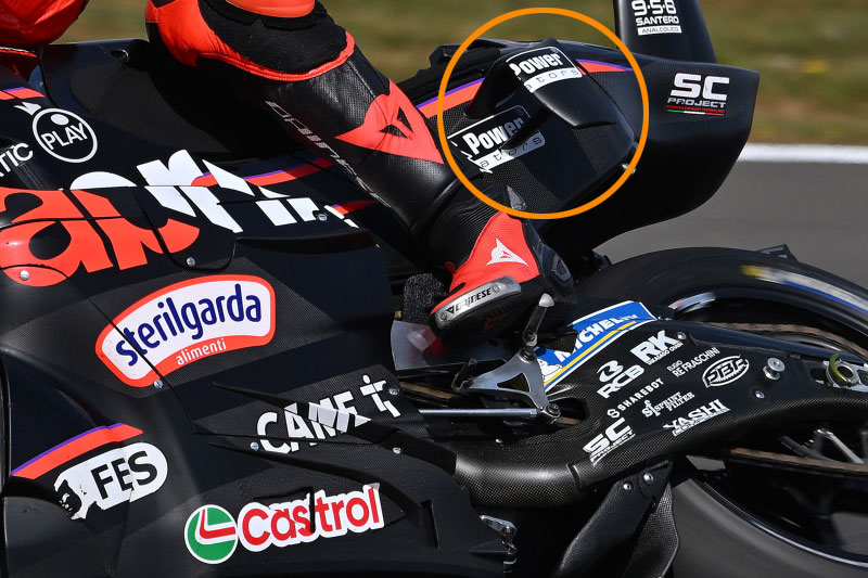 Chez Aprilia, Lorenzo Savadori a inauguré en piste vendredi matin de nouveaux ailerons de selle, placé au niveau du fessier du pilote et descendant verticalement.