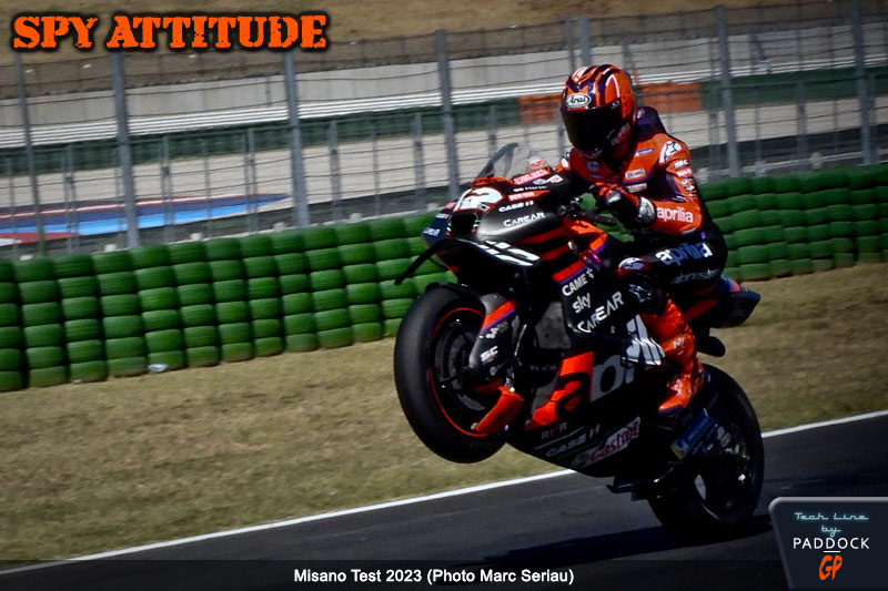 Et c’est un peu la même déception du côté d’Aprilia, où visiblement rien de vraiment nouveau n’était prêt, comme l’indiquait la présence de Lorenzo Savadori… en civil !