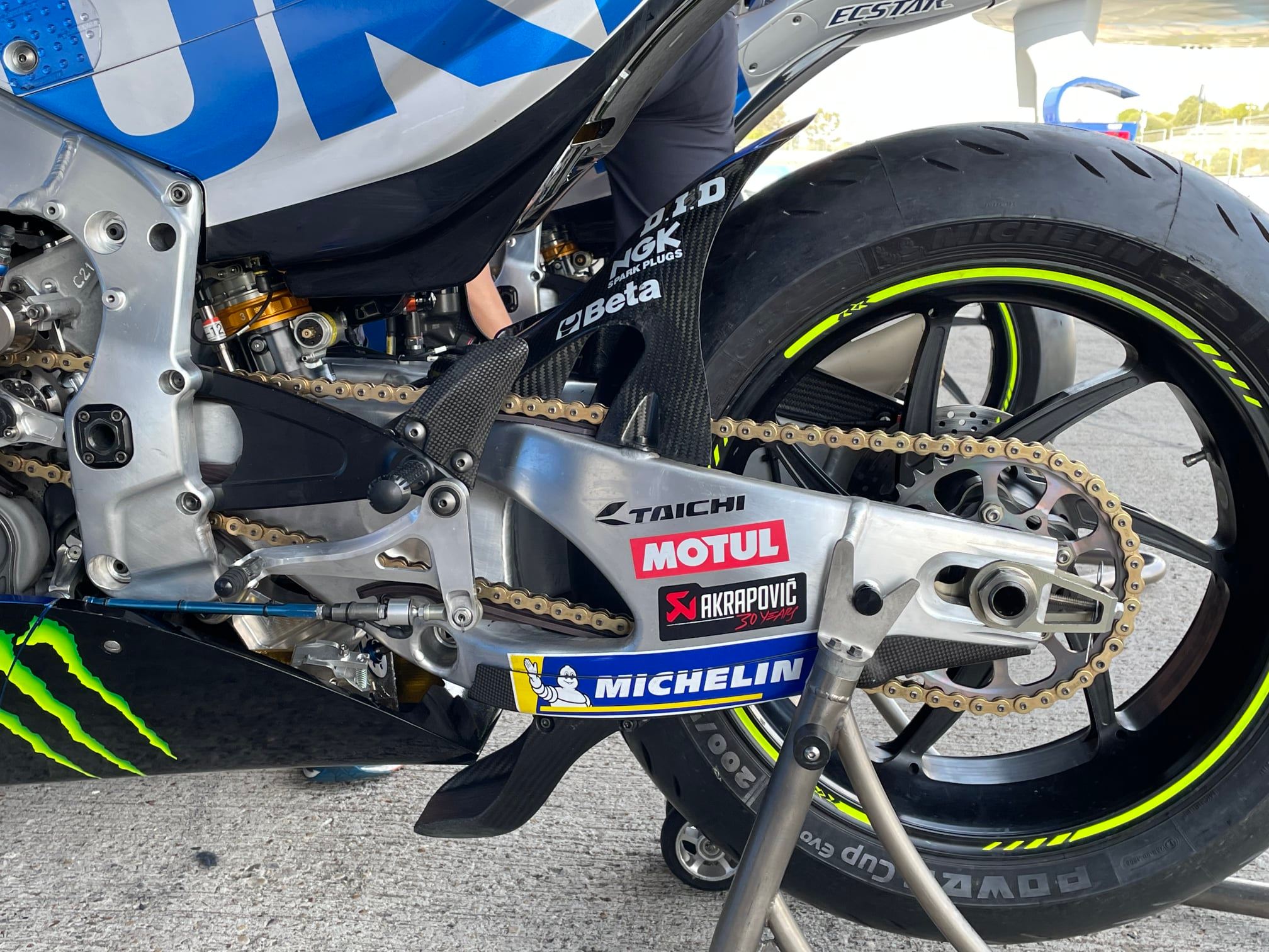 Il n’était pas évident de savoir ce que Suzuki a testé à Jerez : les équipes techniques tout comme les pilotes n’ont pas été très bavards. Joan Mir et Alex Rins ont déclaré qu’ils avaient à disposition un nouveau châssis et un nouveau bras oscillant, mais aucune modification n’était évidente à repérer.