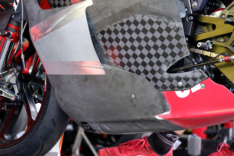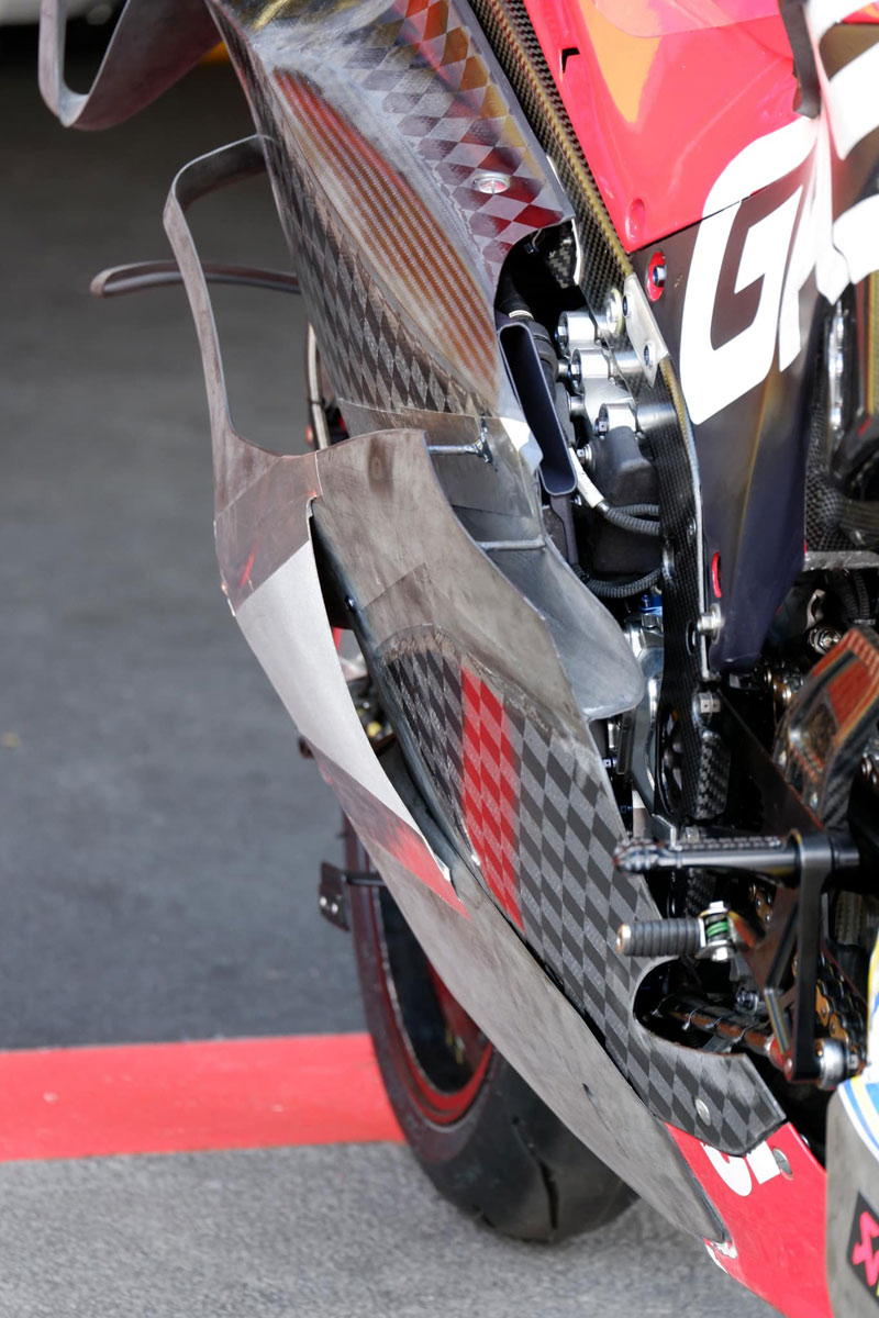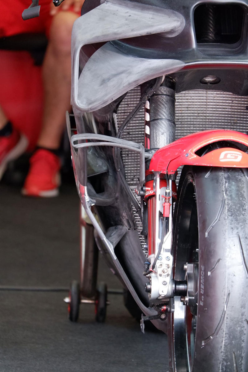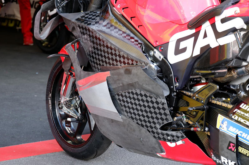 « Le nouvel aérodynamisme recouvre essentiellement le carénage latéral complet, le transformant en une surface complètement lisse. Vous pouvez voir plusieurs zones où il y a des sorties d’air, avec les canaux à l’avant qui dictent l’endroit où l’air aboutit.