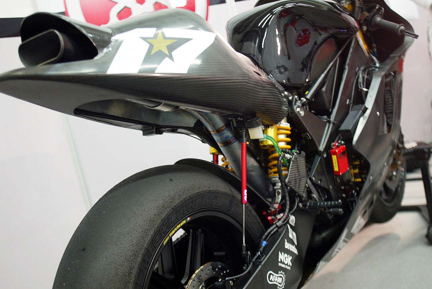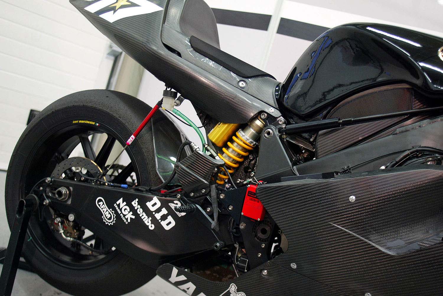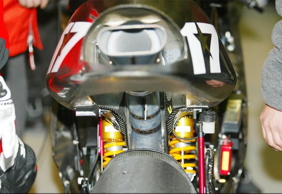 Vous ne rêvez pas, il y a bien 2 amortisseurs Ohlins montés sur une Yamaha YZR-M1