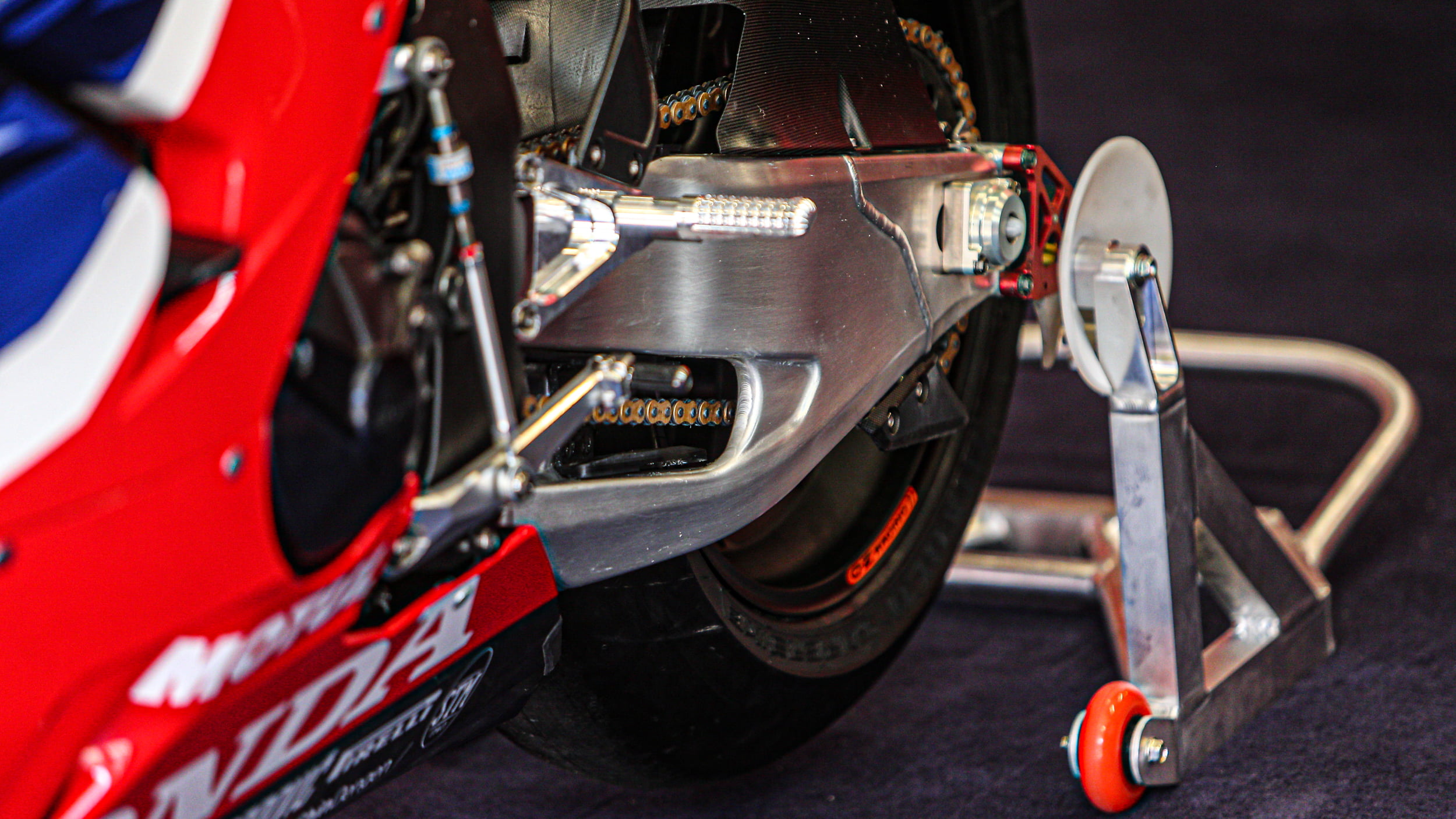Ainsi, en plus du système de gestion du couple moteur que l’on a vu précédemment, un nouveau bras oscillant a été testé, toujours en vue d’améliorer le grip du pneu arrière.
