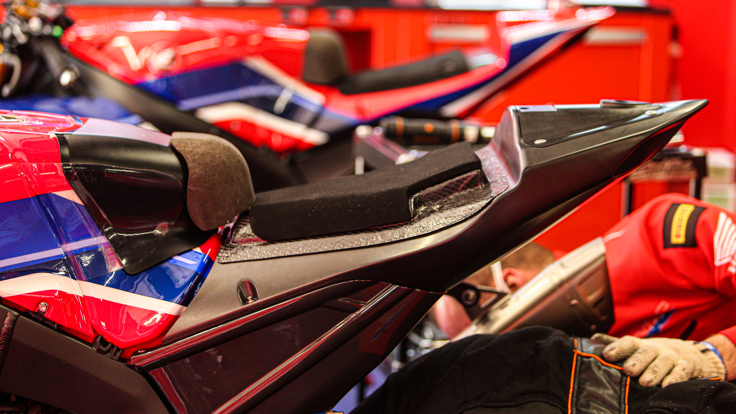 Les essais sont l’occasion idéale pour les équipes et les usines pour évaluer de nouvelles pièces. Le Team HRC a amené quelques pièces à Barcelone : un nouveau bras oscillant, de nouvelles selles pour Leon Haslam et Álvaro Bautista ou encore un nouvel échappement. La Honda était même pourvue d’un capteur de couple afin de régler au mieux l’électronique. Le moteur a aussi été revu pour améliorer les performances du fleuron du constructeur ailé.