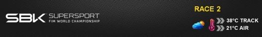 • Álvaro Bautista (Aruba.It Racing – Ducati), après être parti de la pole position en tant que vainqueur de la Superpole, a également remporté la Course 2, dominant la course du début à la fin. Il a également réalisé le tour rapide de la course avec un temps de 1′ 30,766. Derrière lui se trouvaient une fois de plus son coéquipier Michael Ruben Rinaldi et une Yamaha, dans ce cas celle pilotée par Andrea Locatelli (Pata Yamaha Prometeon WorldSBK).
