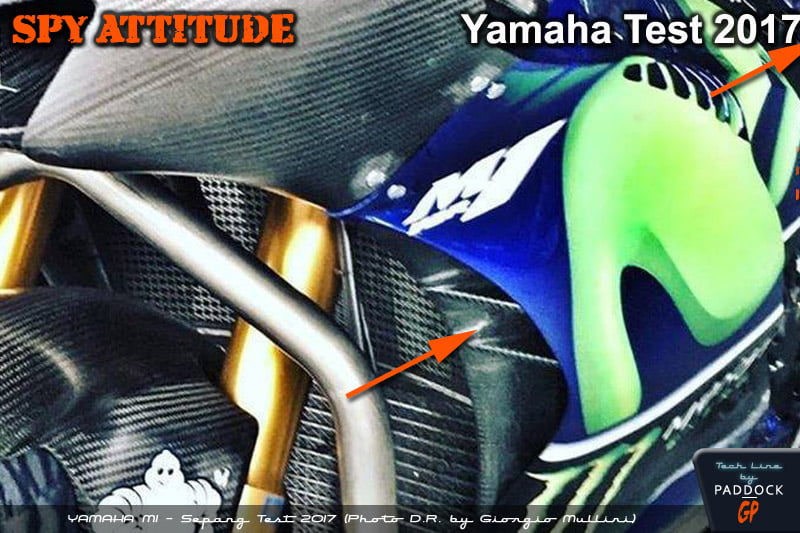 Techniquement, on voit bien que Yamaha a eu la même lecture du règlement que nous avions eu début décembre, et a créé des ailerons internes. L’air rentre donc à l’intérieur du carénage, qui a été élargi pour l’occasion, et ressort par de nombreuses ouïes de requin en sortie de carénage.