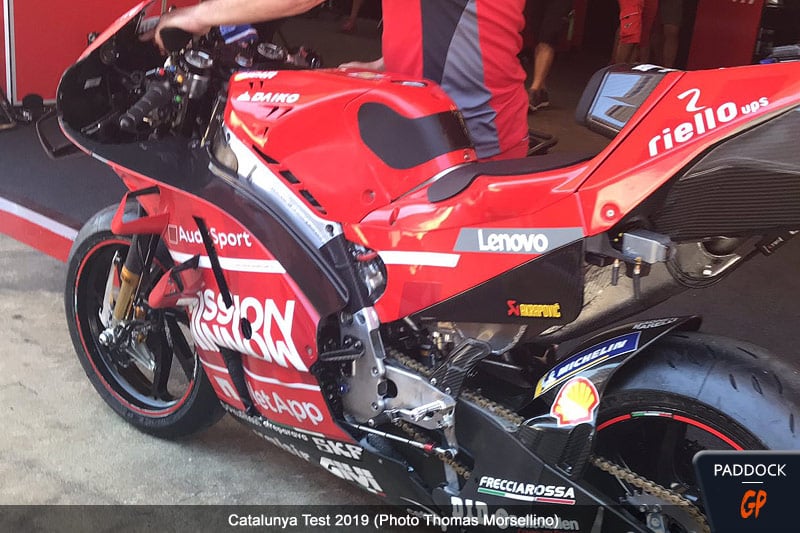 Andrea Dovizioso, lui, a essayé un nouveau cadre comportant des renforts en carbone sur la partie arrière des longerons, un procédé déjà utilisé dans la passé pour modifier la rigidité de ces derniers.