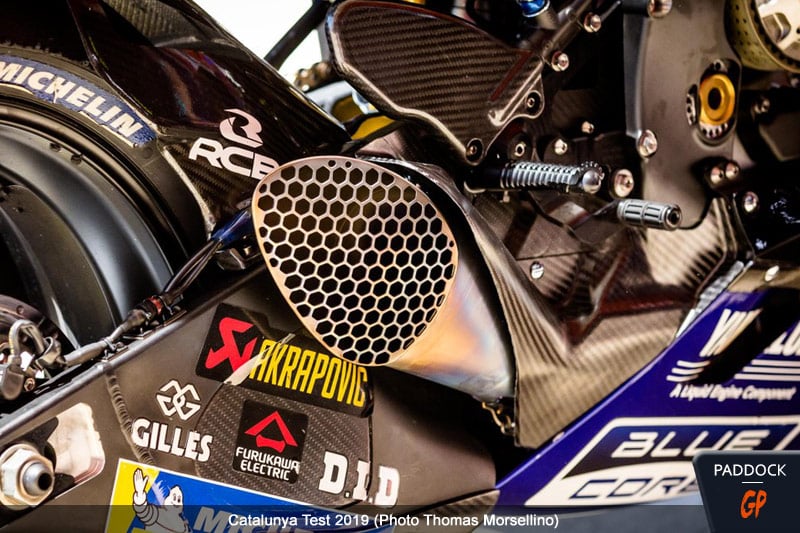 Chez Yamaha, on teste sur la M1 de Valentino Rossi le nouveau pot un peu plus long déjà aperçu ce week-end…