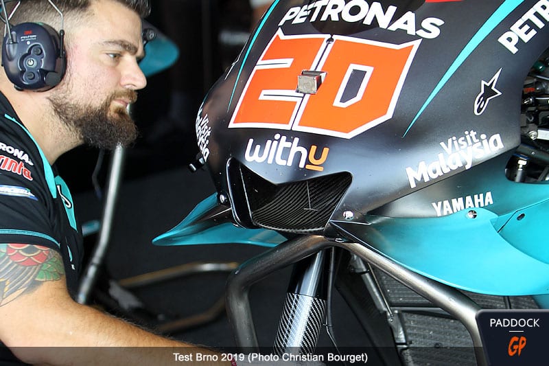 Fabio Quartararo était sorti du Grand Prix de la République Tchèque avec le minimum syndical. Mais sur le même tracé de Brno, au lendemain du dixième rendez-vous de la saison, le rookie a retrouvé sa Vista et il a même pris un peu de grade chez Yamaha. Car on l’a vu avec une fourche carbone…