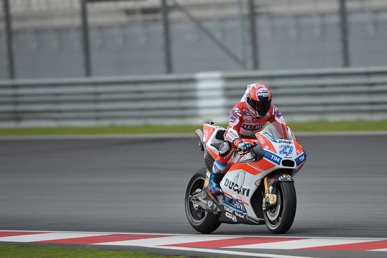 D’abord la piste. L’enrobé malaisien pose problème et on a beau l’éponger avec des essuies tout géant ou le mettre sous la perfusion d’une poudre bleue, rien n’y fait. Il garde son eau et ne sèche pas. Une situation qui agace, à commencer par Gigi Dall’Igna qui a déclaré sur crash.net : « pour le moment, ces tests sont une perte de temps. La piste reste mouillée trop longtemps. C’est difficile dans ces conditions de travailler. En deux jours, on a dû avoir une heure de bitume sec, c’est-à-dire rien ».